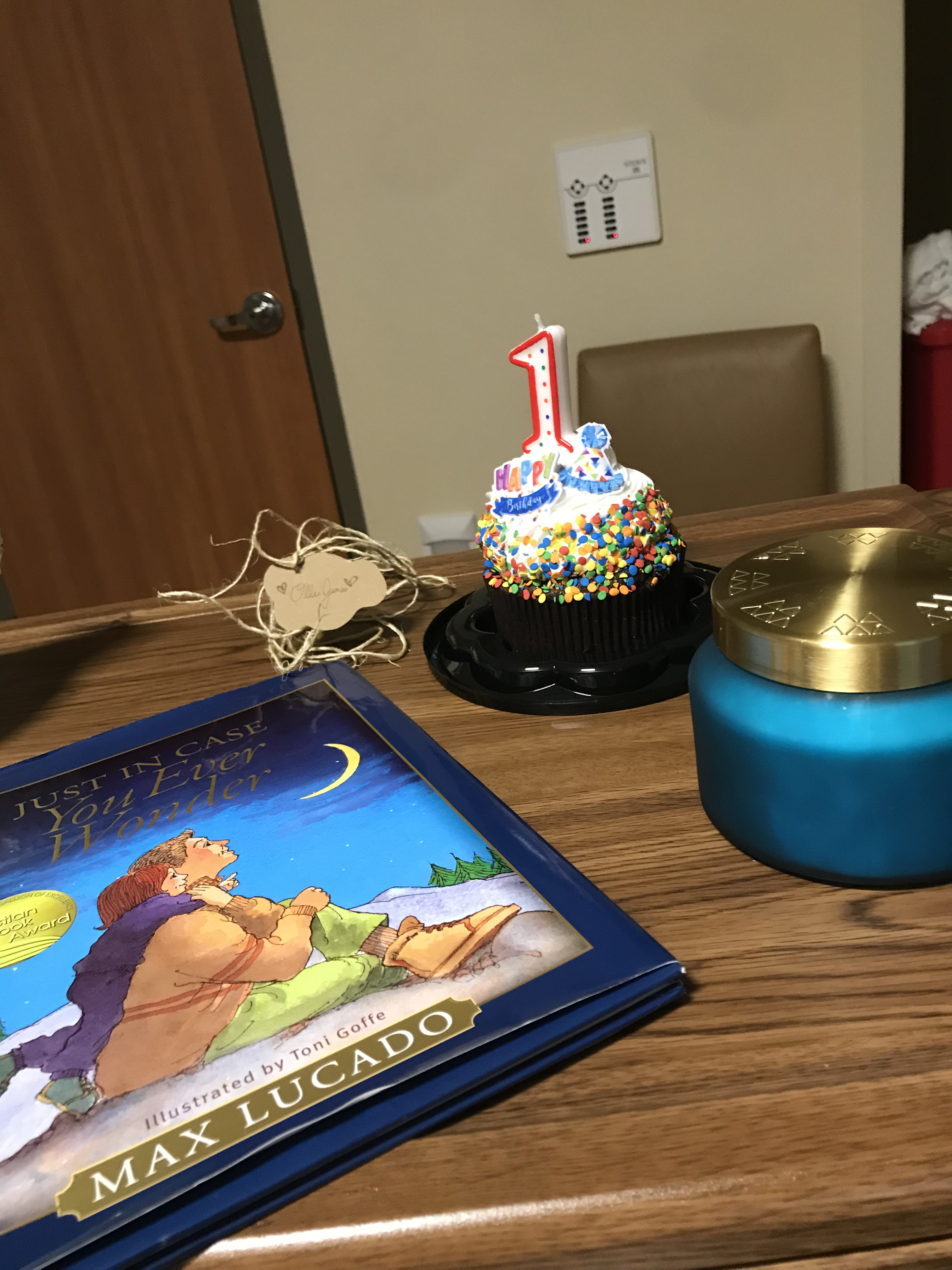 After they left, we spent the rest of the evening making memories. We sang Ollie happy birthday, ate cake and opened his present, a book from his Aunt Chass & Uncle Matt called “Just In Case You Ever Wonder” by Max Lucado. I read him the note in the front cover and then read him the book through tears. It was the perfect first book for Ollie. We soaked in every moment and recorded a few on video too so we’d have them to look back on.